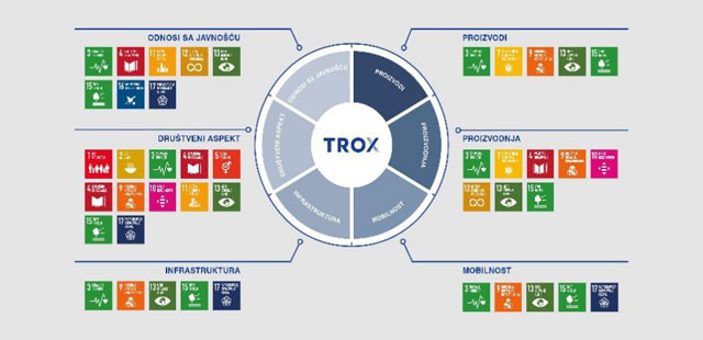 TROX je odlučan u ostvarivanju odabranog pristupa kompletne održivosti, koji obuhvata 6 strateških oblasti delovanja. One pokrivaju skoro svih 17 ciljeva održivog razvoja. Strateške oblasti delovanja koje je kompanija TROX za sebe definisala su usmerene ka ostvarivanju ovih ciljeva i pomoću njih će moći da se prati ostvarivanje aspekta održivosti u aktivnostima kompanije. Na taj način TROX želi da odgovori na ogromne izazove vremena u kojem živimo i doprinese unapređenju održivog življenja, rada i poslovanja. Napredak u ostvarivanju ovih ciljeva možete pratiti u godišnjim izveštajima o održivom razvoju kompanije.