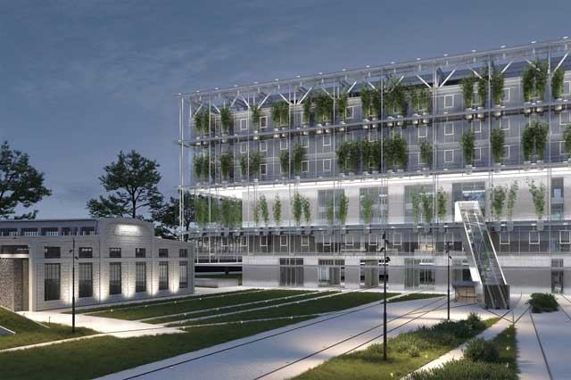 Nova poslovna zgrada je odignuta od terena tako da se ispod nje teatralno uvode posetioci u ceo kompleks, i to upravo pravcima nekadašnjih šina kojima su dolazili vozovi sa Glavne železničke stanice. Zastakljeni eskalator vodiće posetioce na javnu panoramsku terasu na trećem spratu poslovne zgrade, odakle će moći da se sagleda ceo kompleks Ložionice sa okruženjem.