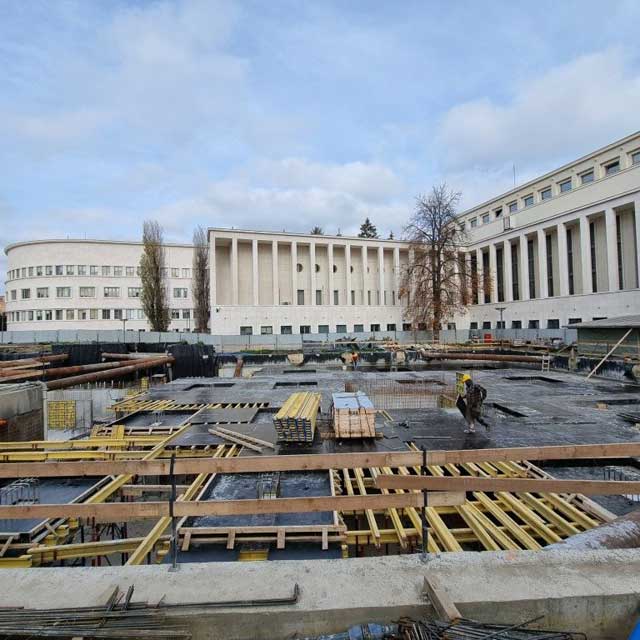 Grubi radovi na podzmenoj javnoj garaži kod Skupštine AP Vojvodine okončani su krajem 2022. godine. Time je završeno sa svim zemljanim radovima i radovima na iskopu, kao i grubim građevinskim radovima koji se odnose na konstruktivni deo objekta. U ovom trenutku se izvode instalaterski radovi unutar objekta, nakon kojih će uslediti i fini zanatski, završni radovi.