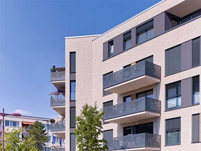 Svetlo-tamni kontrasti karakteristični su za stambeno-poslovnu zgradu na središnjoj lokaciji u četvrti Sindorf u Kerpenu. Tamne balkonske ograde i prozori s tamnim dizajnom čine pandan svetloj fasadi od opeke u krem boji. Ovde se koristi sistem profila GEALAN S 9000 u GEALAN-acrylcolor® antracit sivoj boji, čiji tamni venecijaneri upotpunjuju koncept boja.
