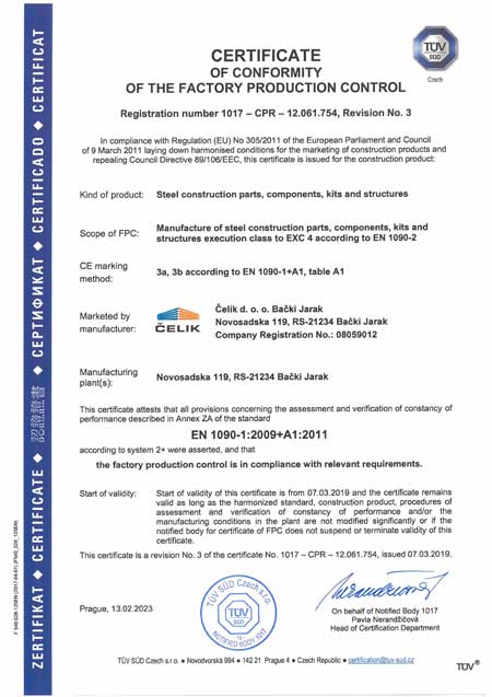 Kompanija Čelik iskazuje zahvalnost svim svojim klijentima i poslovnim partnerima na podršci i poverenju koje su joj ukazali do sada, a posebno se raduje što će i dalje pružati najbolje moguće proizvode i usluge, sada sa još većim standardima kvaliteta.
