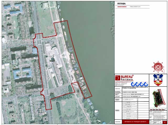 Ortofoto sa granicom obuhvata (Foto: Bureau Cube Partners/Elaborat za rani javni uvid Plana detaljne regulacije Bloka 11 i dela Bloka 10 Gradska opština Zemun i Gradska opština Novi Beograd)