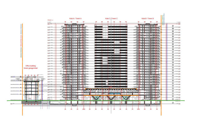 One će imati po 27 spratova, a predviđene su i dve šestospratne stambene lamele (D i E) i aneks između A i B kule u kom će se nalaziti SPA centar. U planu je i 5 prizemnih objekata sa ugostiteljskim sadržajima.