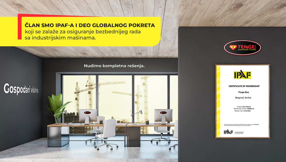 Kompanija Tenge zvanično je postala član međunarodne organizacije IPAF (International Powered Access Federation), pridružujući se tako globalnom pokretu koji teži unapređenju bezbednosti u industriji građevinskih mašina.