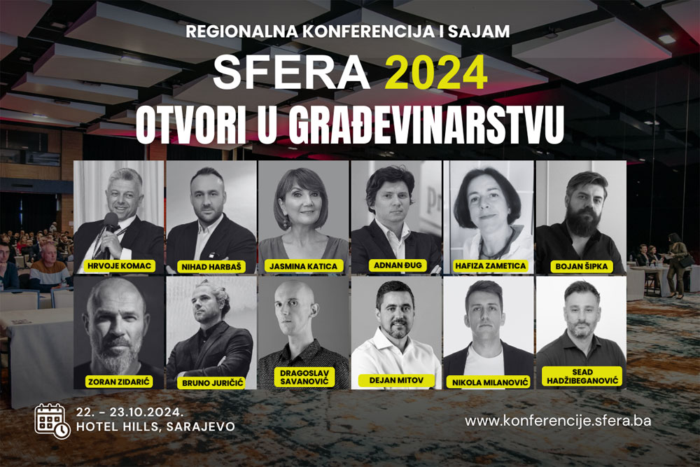 Sarajevo će 22. i 23.10.2024. godine biti domaćin konferencije "Sfera 2024: Otvori u građevinarstvu" koja će se održati u Hotelu Hills. Konferencija će okupiti stručnjake iz oblasti građevinarstva i arhitekture, nudeći jedinstvenu platformu za razmenu znanja, iskustava i ideja.
