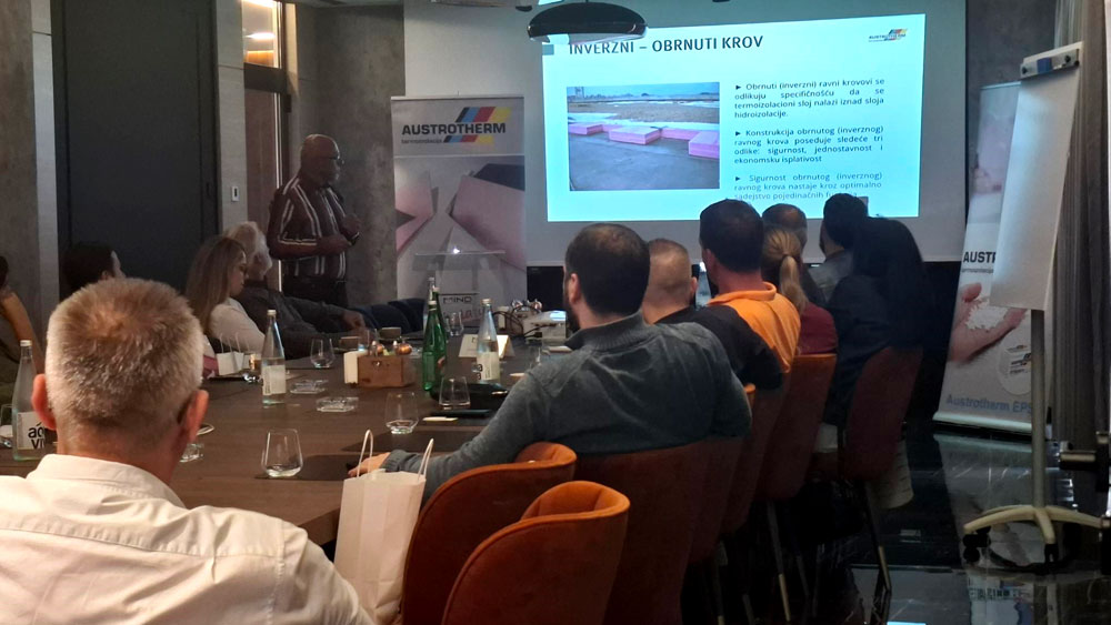Dvadesetak odabranih inženjera iz Kragujevca i regiona je u reprezentativnom objektu unutar kragujevačkog modernog poslovnog kompleksa "MIND Park" prisustvovalo tročasovnoj prezentaciji koja je bila sastavljena iz tri dela – sažetog predstavljanja preduzeća i internacionalne grupacije kojoj Austrotherm d.o.o. pripada, zatim opšteg dela tj. predstavljanja proizvodno-distributivne palete proizvoda, a naposletku je usledio za projektante najinteresantniji i sadržajno najobimniji deo posvećen ravnim krovovima i termičkoj izolaciji istih, uz upotrebu XPS-a i/ili EPS-a, u zavisnosti od tipa ravnog krova koji je određen projektnom dokumentacijom.