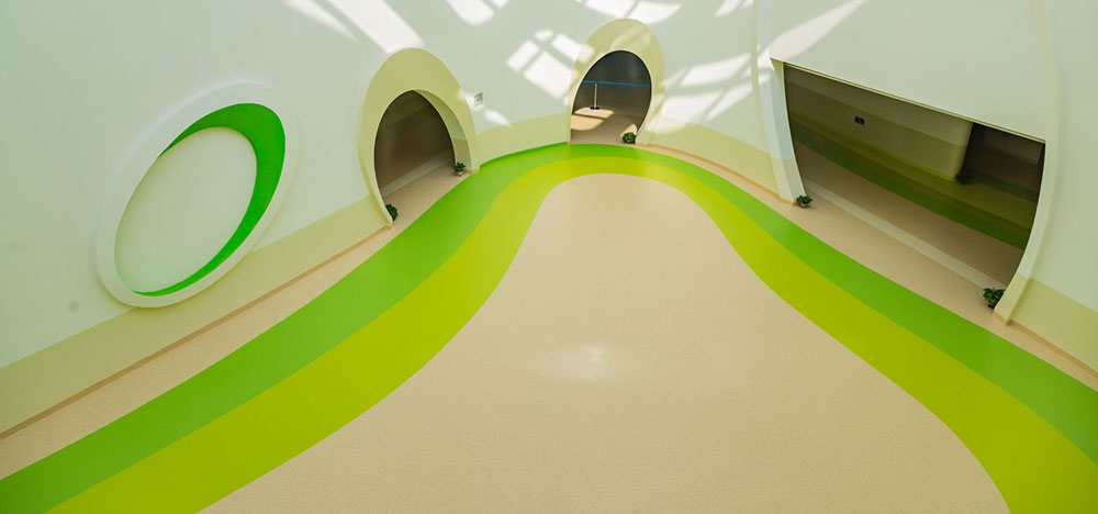 Građevinski materijali koji stvaraju prijatnu atmosferu posebno su pogodni za arhitektonske i unutrašnje dizajne prilagođene deci. Sa više od 300 boja u standardnom rasponu i beskrajnim mogućnostima dizajna uz umetke, nora gumene podne obloge nude praktično neograničene mogućnosti za kreativni dizajn.