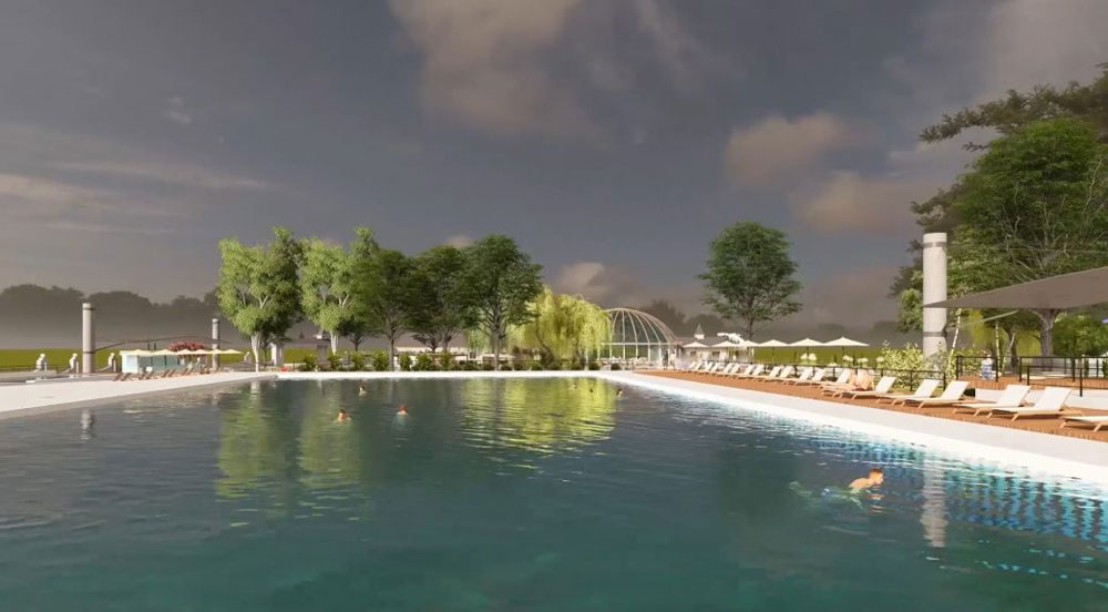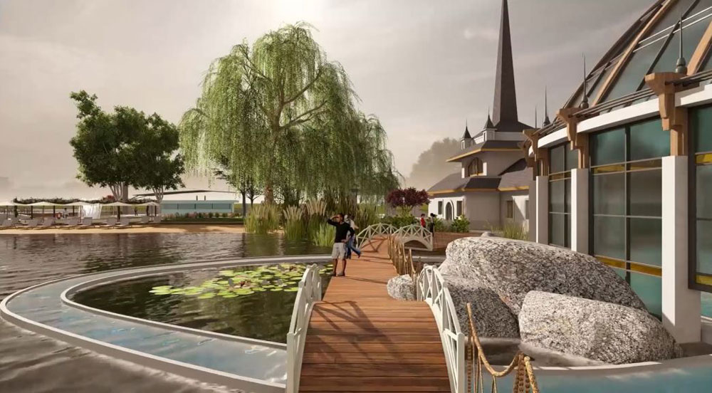 Unutrašnji bazeni sa različitim vodenim atrakcijama nalaziće se u severnom krilu glavne zgrade, dok će se na zapadnoj strani naći pet malih termalnih bazena sa različitim temperaturama vode. Za južno krilo predviđen je SPA i velnes centar sa saunama, hidromasažnim bazenima i prostorijama za relaksaciju.