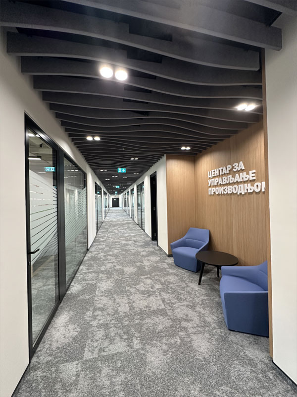 Adaptacija trećeg sprata NIS Business Centra obuhvatila je radove na krilima D i E, sa ciljem formiranja modernog centra za upravljanje proizvodnjom koji odgovara savremenim potrebama i visokim tehničkim standardima.