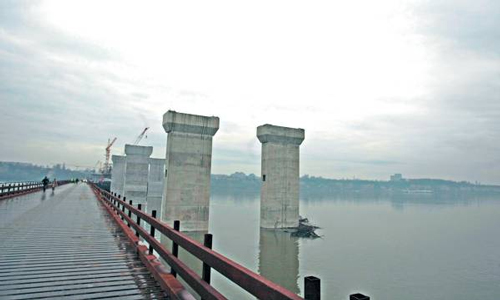 Na oba glavna stuba, završeni su "nulti" segmenti sa kojih se, pomoću kranova, radi glavni raspon mosta preko plovnog puta Dunava.