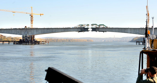 Još nekoliko metara nedostaje, pa da se iznad sredine Dunava spoje dve strane novog mosta Zemun-Borča. Ipak, to ne znači da je most gotov, jer na glavnoj konstrukciji nedostaje još šezdesetak metara u delu ka zemunskoj strani. Tek kada se i to izgradi moći će se reći da je novi most pregazio reku. U "Direkciji za građevinsko zemljište" kažu nam da je od 362 metra glavnog raspona do sada izgrađeno 298 metara. Prema planiranoj dinamici, svi delovi treba da budu završeni na proleće.