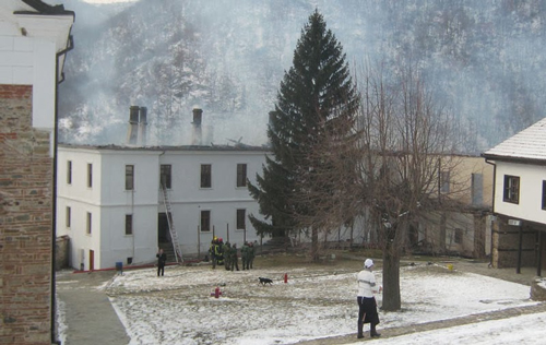 U Manastiru Prohor Pčinjski u toku je raščišćavanje Kraljevog konaka koji je izgoreo krajem prošlog meseca. Zgarište su, nakon požara, čistili monasi i dobrovoljci, a sada to čine pripadnici niškog odreda Žandarmerije. Sve rade ručno, jer mehanizacija ne može da priđe zgarištu. Iznose nagorele grede, čiste šut. Dvadesetpet pripadnika Žandarmerije zgarište raščišćava četiri dana. Levo krilo konaka je očišćeno i spremno za obnovu.