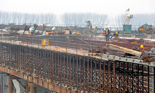U sredu, na glavnom rasponu tek poneki majstor. Ali, dinamika radova zbog toga ne trpi, sve će, kao što je predviđeno, biti pod konac do kraja godine kada će u punom sjaju zablistati most, kao i pristupni put na zemunskoj obali. U međuvremenu, bageri i dizalice odrađuju svoj deo posla na prilazima.